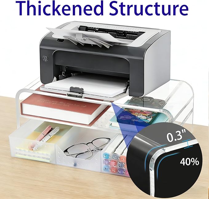 OPNICE Acrylic Clear Desk Organizers and Accessories, 2-Tier Computer Monitor Stand Riser with Drawer, Laptop Stand, Office Desk Accessories for Office Supplies, Transparent