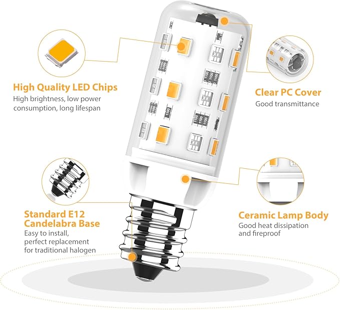 • Wide Application: Suitable for the light fixture with e12 socket. The 2W E12 LED RGB bulbs are great for ceiling fan light bulbs, pendant light bulbs, chandelier light bulbs, desk lamps, wall lamps, etc. Fit for indoor use, home lighting, coffee shop, mall, bar, restaurant, hotel, kitchen, living Room, dining room, bedroom, hallway, etc. We’re committed to providing superior product quality to customers. If any question arises, please reach us via your order. Warm tips: This E12 LED bulb does not support WiFi or Bluetooth connectivity and is designed for basic lighting functions only. Whether for everyday use or festive decoration, these bulbs are the ideal choice.